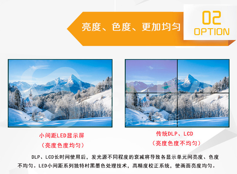 2、獨自開模,16:9的黃金比例,完美替代LCD、DLP拼接尺寸。